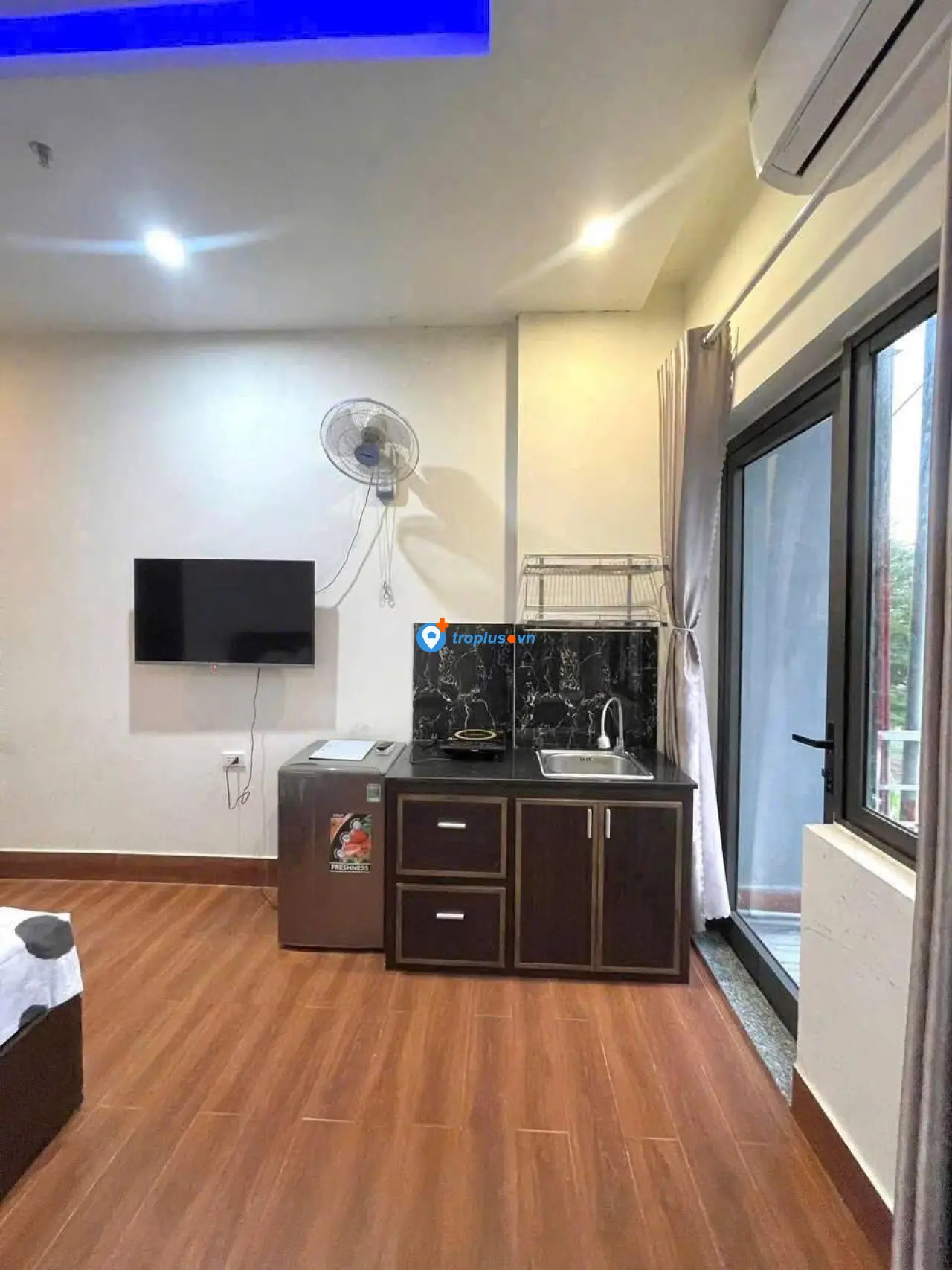 Studio rộng 35m², 1 giường, full nội thất (trừ máy giặt)